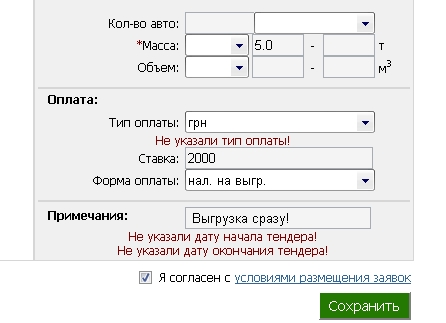 Ошибка редактирования груза